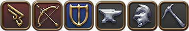 | ⚔️ | 🎒 | 💰 | ✉️ | 💼 | 🔮 | 🥷 |